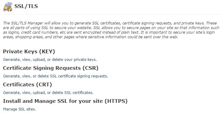- With above files now navigate to your cPanel and go for SSL/TLS module to proceed further